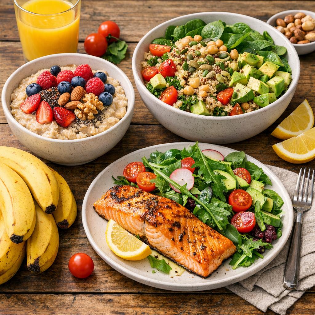 Mit Haferflocken, frischem Obst, Vollkornprodukten, Nüssen und Fisch lässt sich der Körper optimal versorgen. Regelmäßige Mahlzeiten, ausreichend Flüssigkeit und ein Verzicht auf leere Kalorien unterstützen die Energiezufuhr zusätzlich.